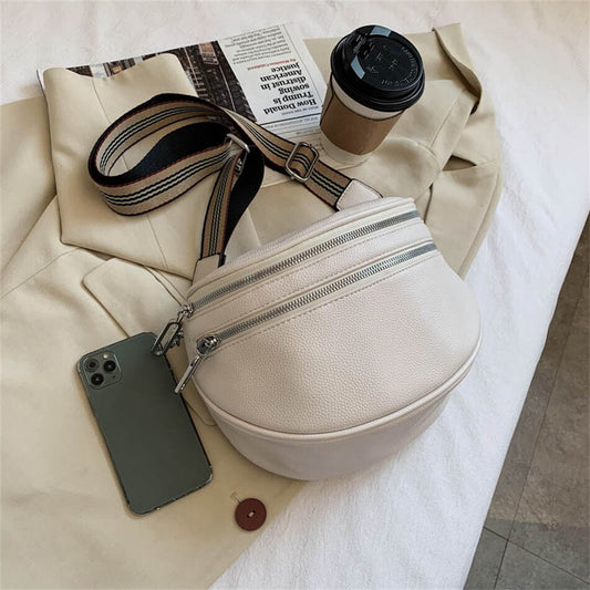 Designer Wide Strap Leather Crossbody Bucket Bag