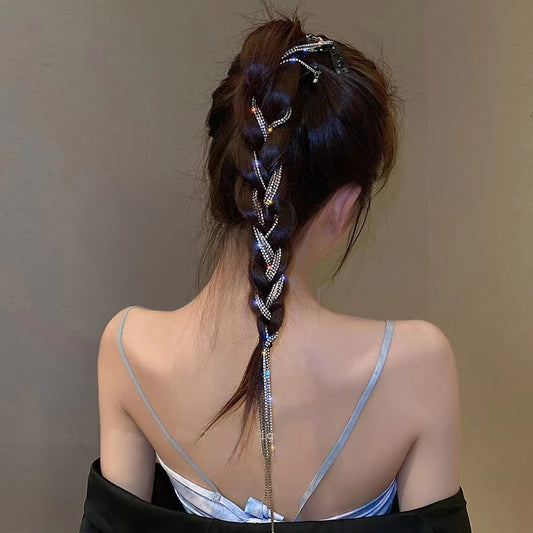 Rhinestone Tassel Chain Copper Barrette Braided Hair Accessories