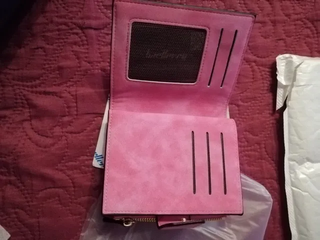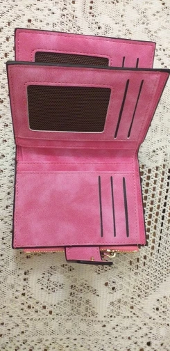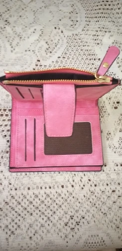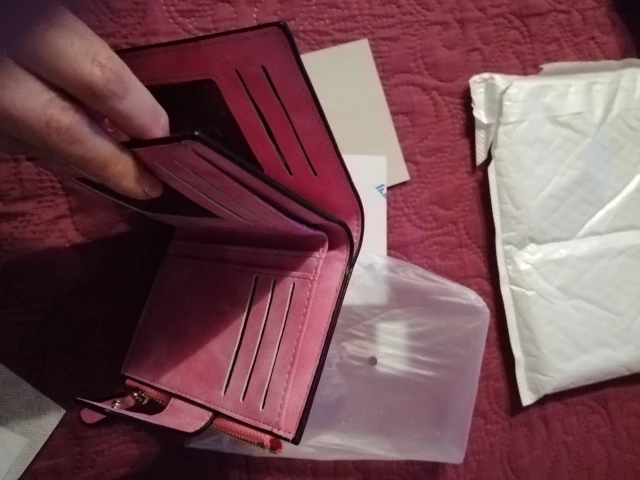 They sent quickly. A new mail was delivered to the ukruin, a new mail arrived in the kuev in 25 days, it was tracked well before the Hoot, it was bad on the hoot. Packed in a regular bag, no damage during transportation. The wallet is beautifully made of soft pink velvety leatherette. There is no foreign smell. Closes on a small button. The zipper from the pocket for change moves well, the pocket is also roomy. In the wallet there are many pockets for cards and paper money. My wife really liked it and it's good. Sizes look at my photos. How it will be in the Wear we will see! I recommend the wallet to buy in this store. All peace and good!