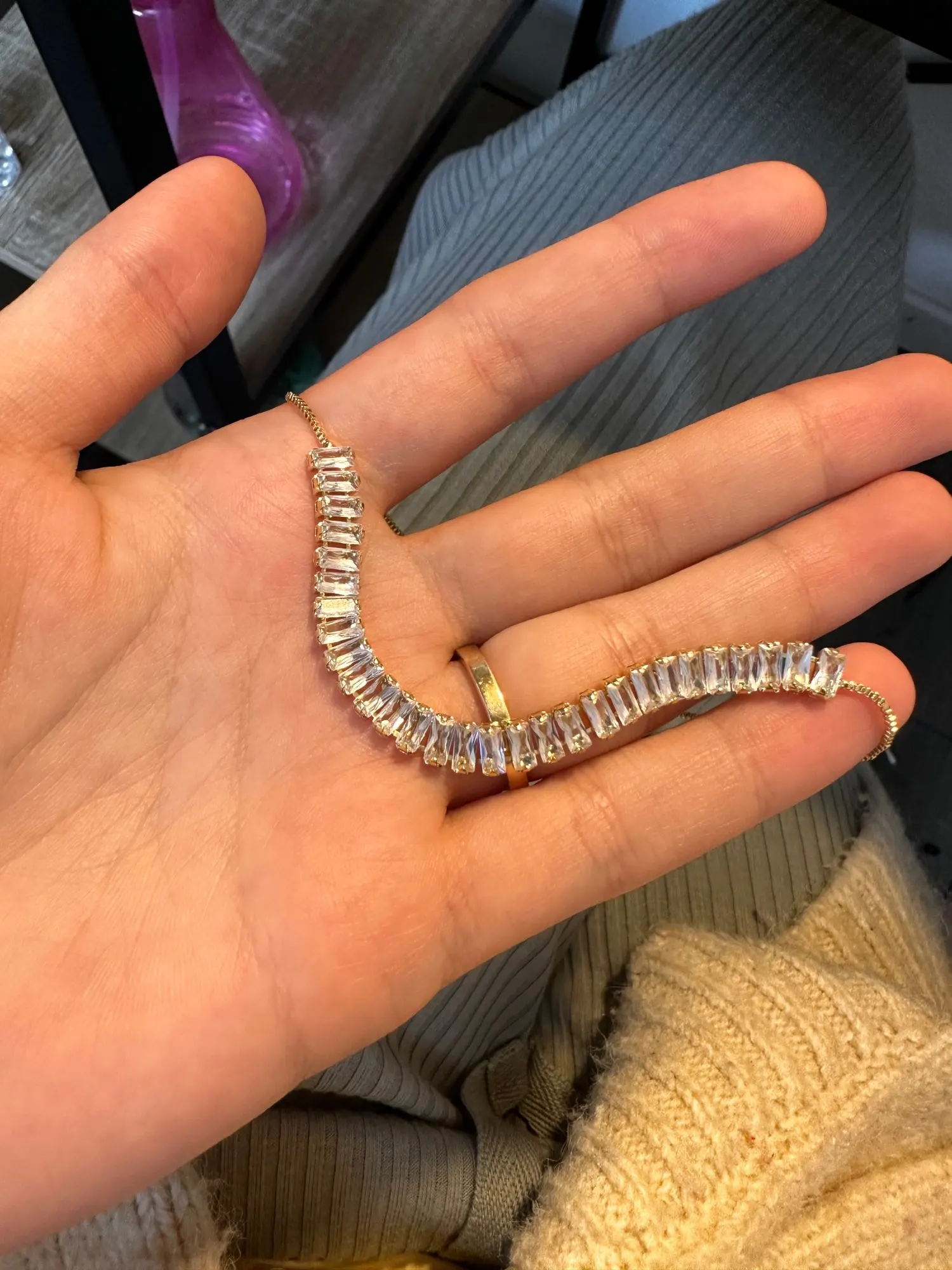 • The bracelet is made of metal and light.