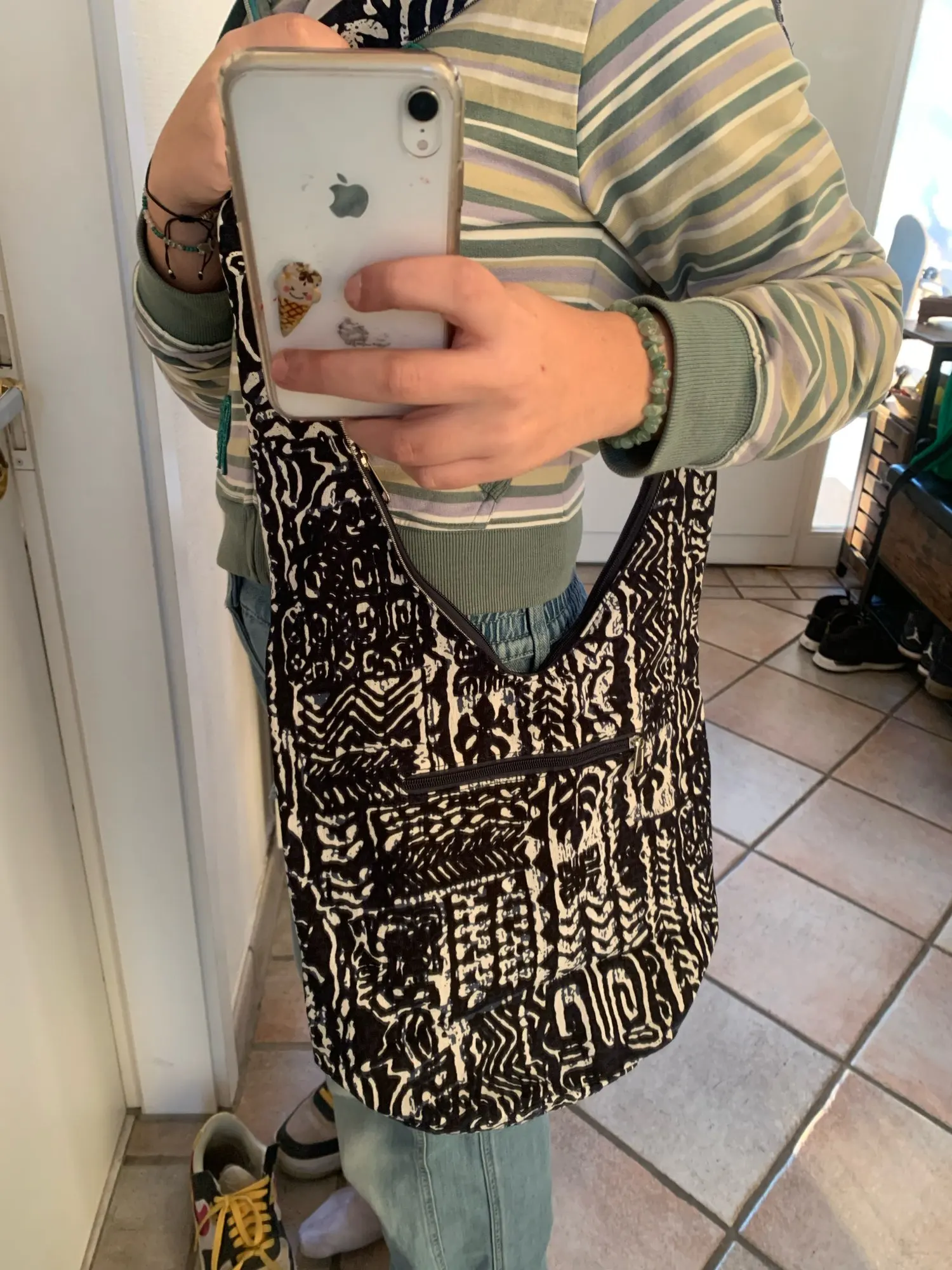 the bag arrived about a month or 2 early!!!! was very happy :) amazing bag, it’s quite a bit longer than i thought but other than that i think it’s my new favourite! the material is very thick and seems durable, it has a zip and 2 extra pockets with zips (one on the inside and one outside) then has another inside pocket with no zip, very handy and useful! i love the bag so much, it’s very spacious so a lot can fit inside and the design is just like the pictures. i’d definitely recommend!!💓💓